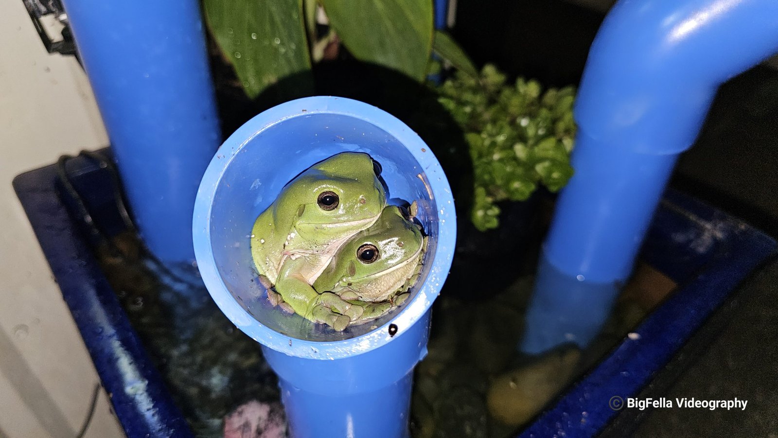 Two Green Tree Frogs enjoying the new Frog Hotels (2024-25)