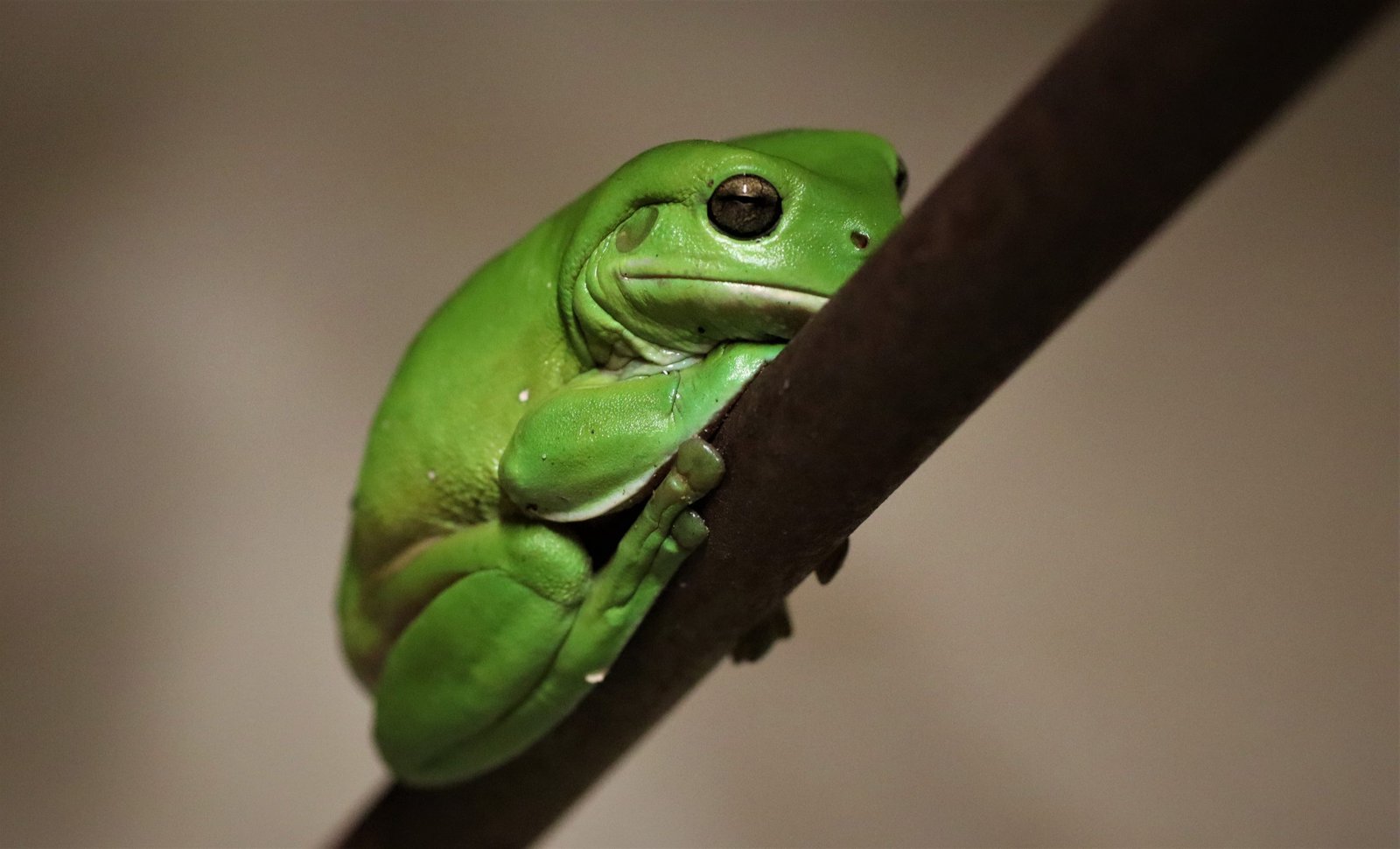 Found throughout almost half of Australia, including the northern areas of WA and NT, most of Qld, NSW, and the northern areas of Vic (over 4 million km²), the Green Tree Frog is a primarily tropical frog that has adapted to more temperate climates. The concentration of their population centres mostly on coastal areas, but are also to be found inland. Their docile nature means they’re unafraid of humans and human habitats. They are a large frog, averaging about 100mm (4 inches) with females being slightly larger than males, and having distinguishing features around the head.